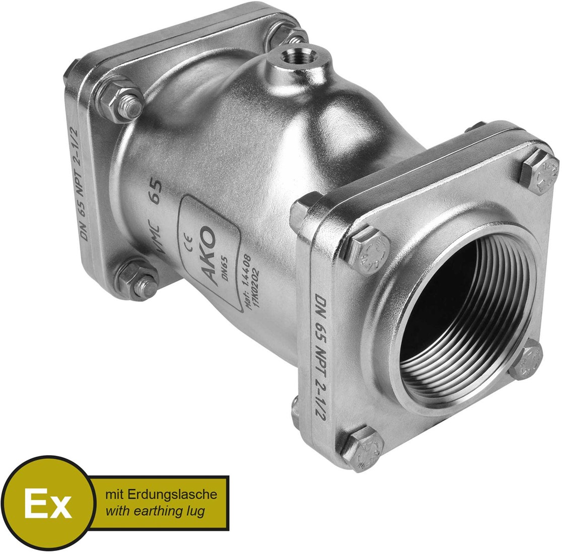 AKO Armaturen Pneumatisches Quetschventil VMC, Innengewinde (ANSI / ASME) Edelstahl 1.4408/Natrlich gummi (cond., silicone-free) DN 65, VMCX65.03SFLF.50N.50
