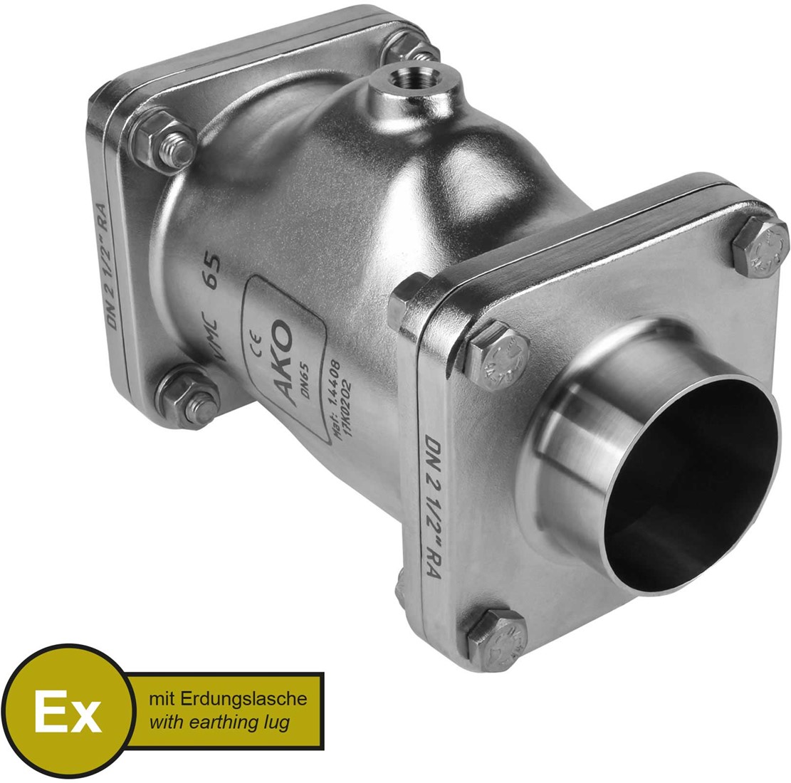 AKO Armaturen Pneumatisches Quetschventil VMC, Anschweienden (ASTM) Edelstahl 1.4408/Nitrile (cond.) DN 65, VMCX65.07LF.50RA.50