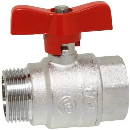 Kugelhahn 1/2, PN40, Messing/PTFE-FKM, Innen-/Außengew. voller Durchgang, Flügelgriff=rot