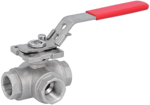 3-Wege Kugelhahn 3/4-DIN2999, d15, PN63, L-Bohrung, Edelstahl 1.4408/PTFE-FKM, ISO5211