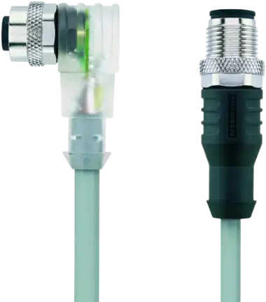AL-WWAK4P3.1-2-AL-WAS4/S370GY | M12/M12 cable, 4p, female 90°/male 0°, 2 m, PUR, LED