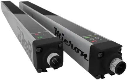 There are four variants: Micron AC/AV, Micron B, Micron C, and detection light curtains with IO-Link. Micron AC/AV detection screens are equipped with two analogue outputs for object measurements and limit value detection, Micron B models have an RS 485 serial interface for detailed beam information, and Micron C models have two antivalent solid-state outputs for simple on/off information.