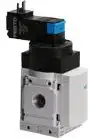 The duration of the pressure build-up is adjusted with the aid of the enclosed restrictor to the valve cap. The output pressure p2 rises slowly in accordance with the restrictor setting. Only the air flow of the restrictor is available when the solenoid valve is not activated. The head office is only opened by activating the solenoid valve. When the solenoid valve is switched off, the main seat is closed and only the airflow from the flow control valve is available. The solenoid valve must remain on to vent a system because it increases the flow rate from 2 and 1 and reduces the discharge time.