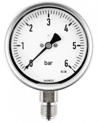 MANOMETER 7021 63 mm 0-10 bar klasse 1,0 1/4 BSP onder SS
