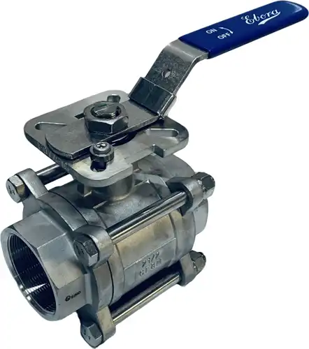Ebora 3-piece stainless steel ball valve 2 1/2 BSPP, PN40 with topflange ISO5211 F07/F10, square 17 mm, with handle QC18-31129