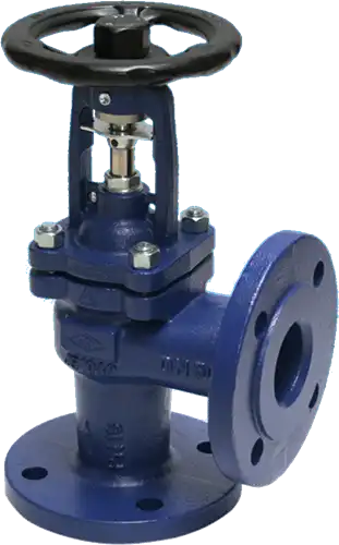 ARI-Armaturen angled flanged-Bellows shut-off valve FABA-Plus 12.047 DN100,PN16,EN-JL1040,regulating plug with marginal seatMaintenance-free metallic sealing angled shut-off valve with flanges. Housing made of cast iron EN-JL1040 with basic primer. Spindle sealing by double-walled stainless steel bellows made of 1.4571. Internal parts 1.4021+QT, fine-threaded spindle with externally mounted and rolled thread, flat funnel lubrication nipple, recessed locking device, heat-dissipating bracket cover optimized for attachments made of EN-JS 1049, safety gland, detachable anti-rotation device with indicator, tight-closing, leakage rate A according to EN12266, non-rising metallic handwheel with cathaphoretic coating, retrofittable limit switch, fully insulatable according to the Building Energy Act - GEG, TA-Luft and EN ISO 15848-1 on request. Overall length: according to EN558/1. Medium temperature: -10 - +300°C. Nominal pressure: PN 16. Nominal size: DN100. Cone design: regulating cone with edge seat. Weight: 32.4 kg. Article code: 120460100017.