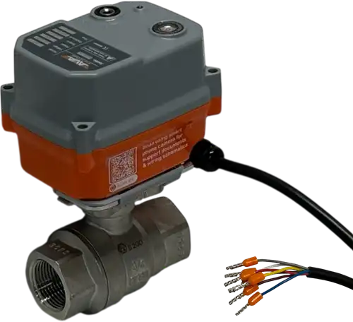 Ebora 2-piece stainless steel ball valve 3/4 BSPP, PN63, with actuator-AVA B10, stainless steel/PTFE-FKM, 230V 50Hz, running time 5sec. EBQB18-31124-Ava B10 230 V