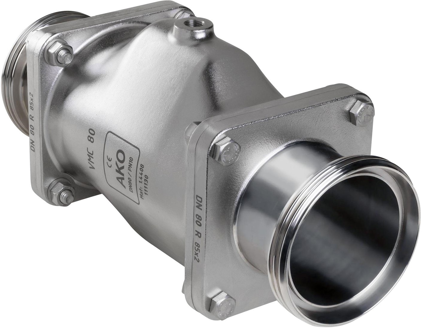 AKO Armaturen Air operated pinch valve VMC, Threaded spigot (DIN) Stainless steel 1.4408/Nitrile (food, pale) DN 80, VMC80.07LW.50M.50