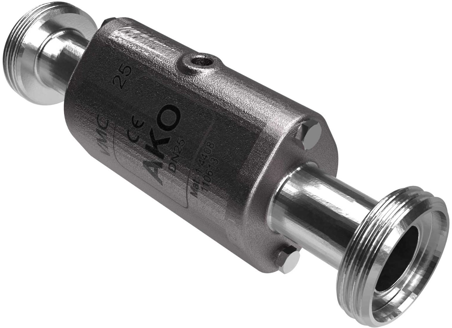 AKO Armaturen Air operated pinch valve VMC, Hyg. threaded spigot (DIN) Stainless steel 1.4408/EPDM DN 25, VMCE25.04HTECKE.50RM.50