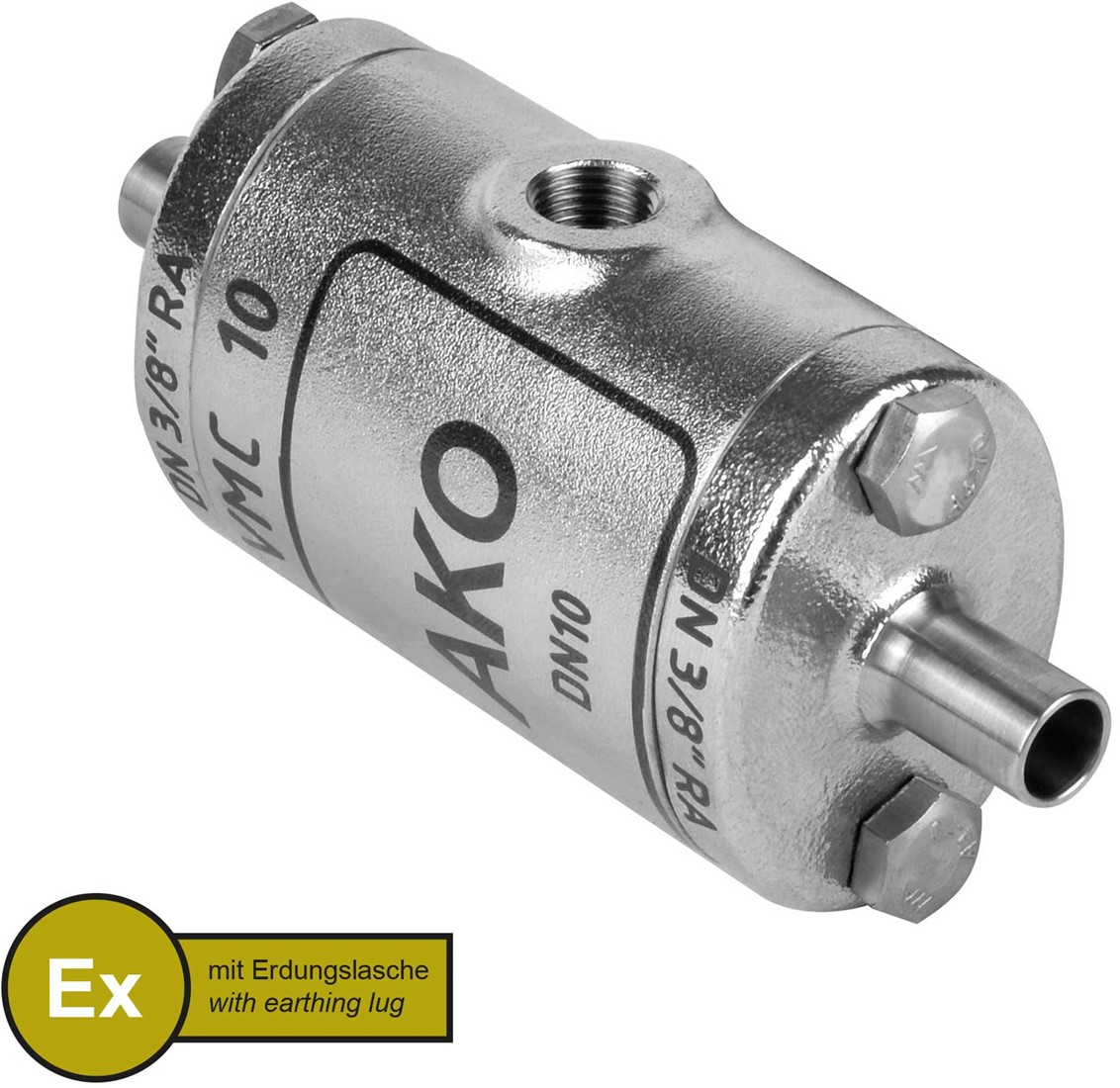 AKO Armaturen Air operated pinch valve VMC, Weld-on ends (ASTM) Stainless steel 1.4408/Natural rubber (cond., silicone-free) DN 10, VMCX10.03SFLFK.50RA.50