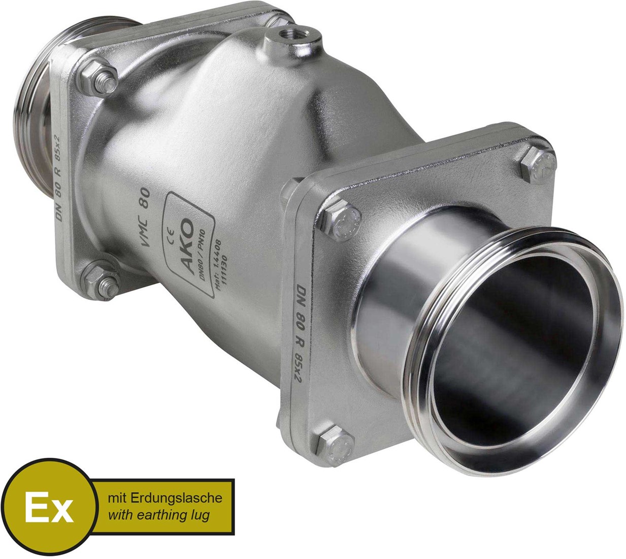 AKO Armaturen Air operated pinch valve VMC, Threaded spigot (DIN) Stainless steel 1.4408/Natural rubber (cond.) DN 80, VMCX80.03LF.50M.50