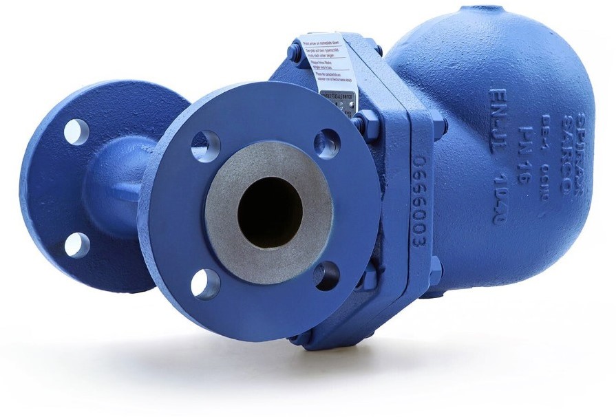 Float ball -Condensate separator for immediate,condensate discharge of largecondensate quantities up to 28000 kg/h instart-up condition.With automatic air vent as standardDouble seat valve for particularly largeflow capacity,maintenance-friendly due to separateinterchangeability of all internal parts,installation position horizontal,flow direction right/left.Connection: Flange DN 50: EN 1092-2Pressure rating: PN16Material housing: Cast iron GG 25Internal parts: Stainless steelDifferential pressure: max. 13 barFlow rate: max. 9500 kg/hManufacturer: Spirax SarcoType: FT43H-14TVOrder number: 1870.050.300