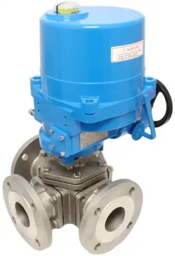 Ball valve ZD, DN50, with drive NE09 stainless steel/PTFE, L-bore, 230V 50Hz, runtime 1