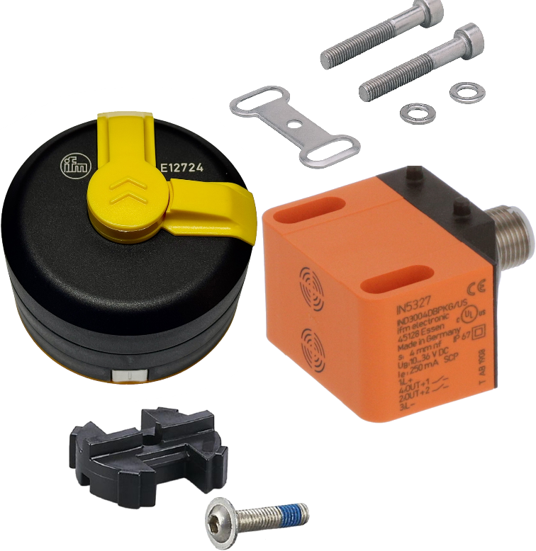 Inductive valve position sensor L for pneumatic actuator with 90 degree switching cam for shaft length 20 mm, IN5327+E12724+E12526+E11310