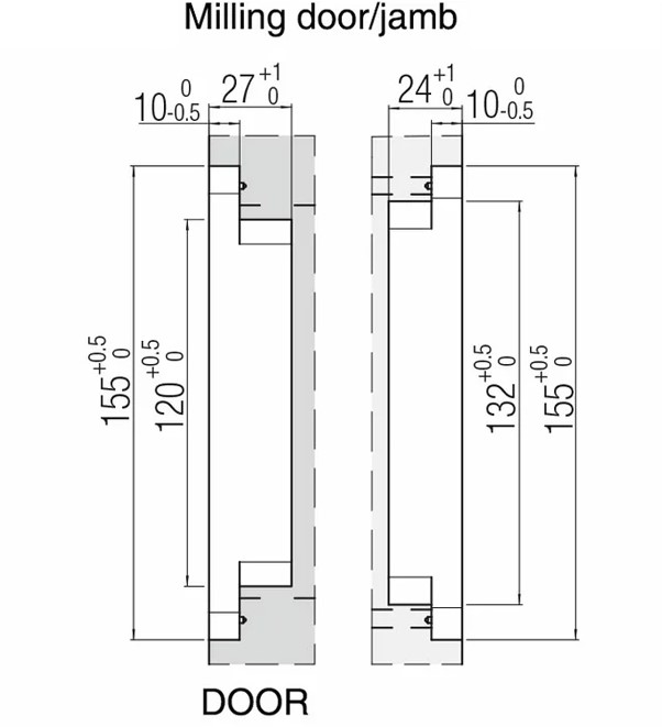 Dubbele freesmal van betonplex voor het infrezen van het Kubica K2400 scharnier in zowel deur als kozijn.
