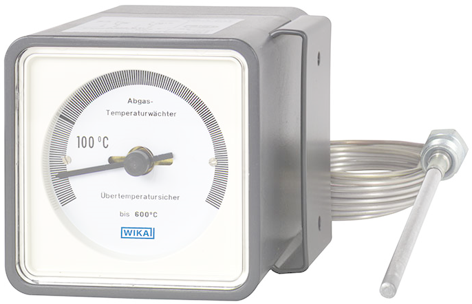 Damage to the measuring system also leads to an interruption of the circuit, as required by the enhanced safety. The measuring system is coupled with a pointer which displays the respective temperature status on a scale.