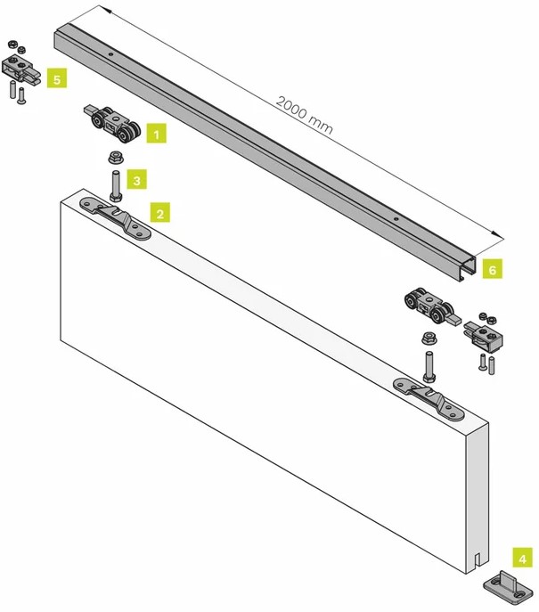 Bij deze schuifdeurset zit een rail met lengte 200 cm. Deze raillengte is precies op maat voor een deur van 103 cm. Is je deur smaller? Dan kan je de rail op maat zagen. De ideale raillengte is twee keer de deurbreedte min 6 cm. Zo blijft de rail altijd boven de ondergeleider.