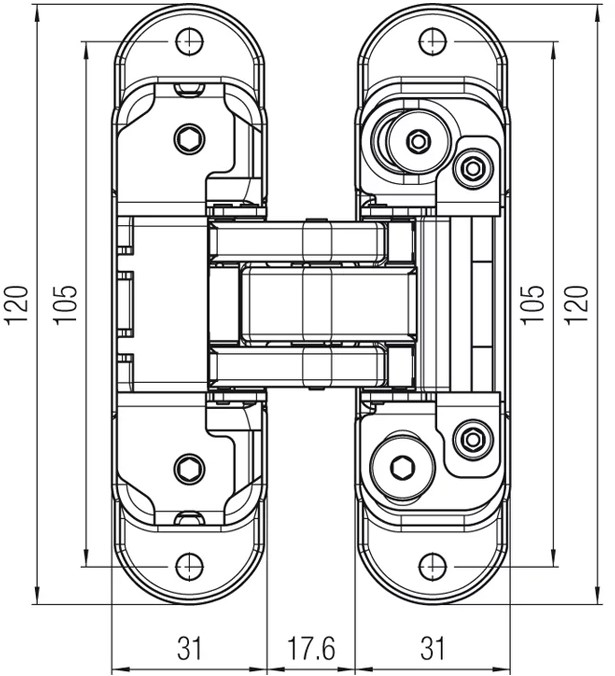 Het K8000 scharnier heeft een iets grotere draaicirkel dan de standaard verdekte scharnieren. Dit scharnier kan op 7 mm afstand vanaf voorkant deur en kozijn worden geplaats. Het scharnier kan daardoor in het midden van het deurblad worden gemonteerd bij een deurdikte van minimaal 38 mm en maximaal 45 mm. Voordeel daarvan is dat deuren alvast voorbereid kunnen worden op de scharnieren als de draairichting in het project nog niet vast staat.