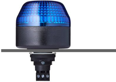 The IBL M22 is a compact LED signal and flashing beacon with a diameter of 65 mm, suitable for panel mounting in a wide range of industrial and general applications. Thanks to modern LED technology, this beacon offers a clear signalling effect, with both steady and flashing light modes, switchable externally.