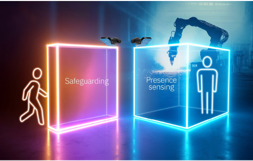 Presence sensing is intended to detect the presence of people in a hazardous zone, even when someone is standing still. The sensor prevents a machine from restarting as long as movement is detected – for example, after an emergency stop or during an automatic restart.