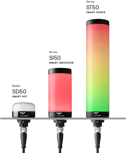 The Smart Signaling 50 series is used in, among others, machine building, intralogistics and industrial automation, where compact, reliable and highly visible signalling is required.