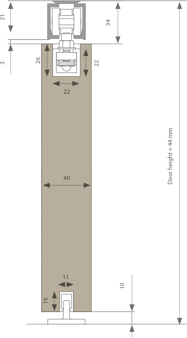 Deze ophangkit van de Expert serie van ROB schuifdeurbeslag is van het type compact. Hierbij wordt de loopwagen niet aan een plaatje op de deur bevestigd, maar wordt er een profiel in de deur gefreesd. Hierdoor kan de bovenkant van de deur tot 3 mm onder de rail gebracht worden. Dit is ideaal voor plafondhoge schuifdeuren.