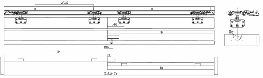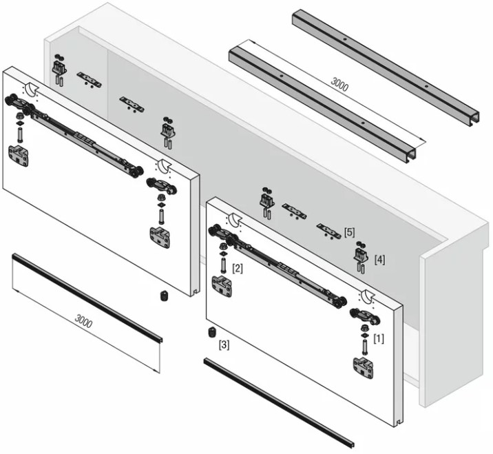 - Plaats de activators voor de softclose alleen op uiteinden van de bovenrail. Zo kunnen deuren op de rest van de rail vrij heen en weer schuiven.