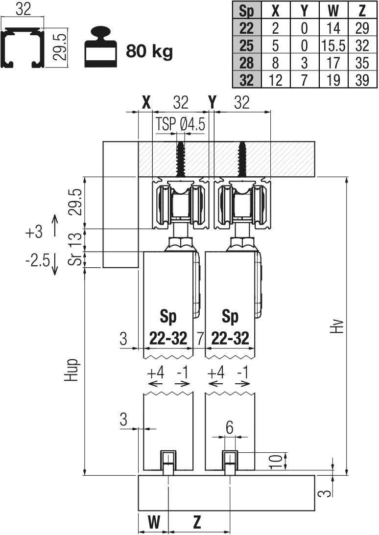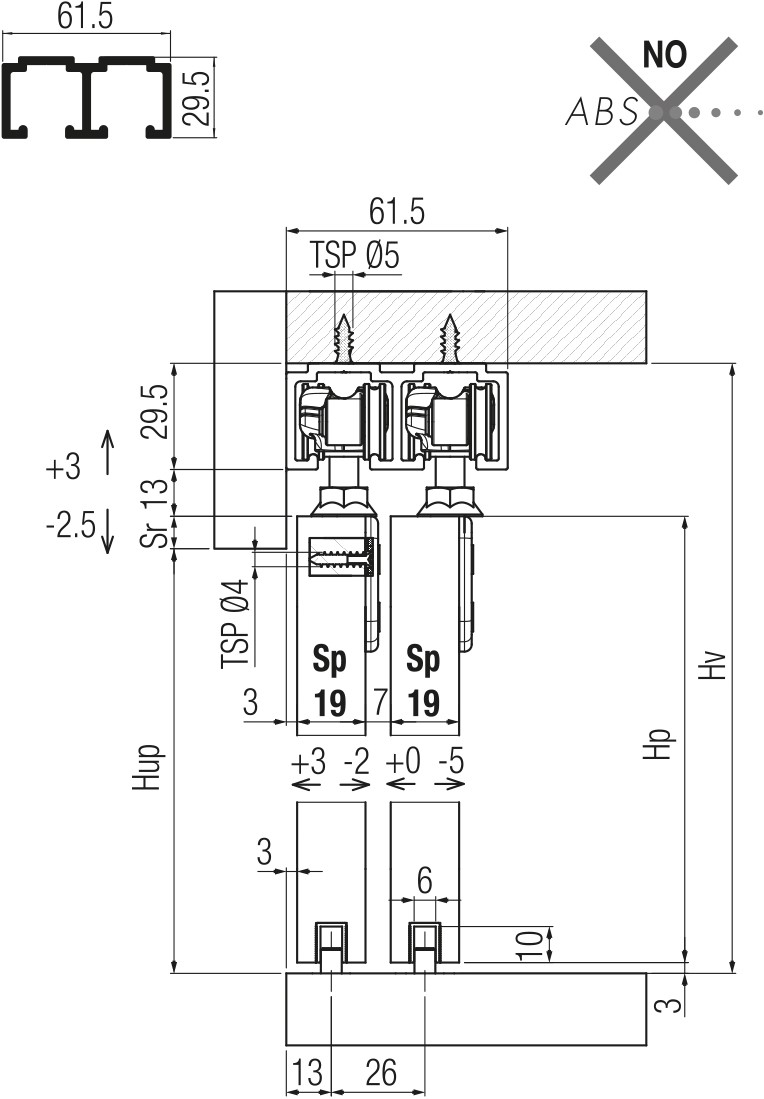 - De dubbele bovenrail is niet geschikt voor de softclose ophangkit. Gebruik de enkele 80 kg bovenrail.