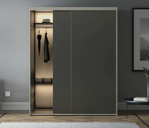 2. De ophangkit: Kies hier voor een ophangkit zonder softclose of een ophangkit met softclose. De minimale deurdikte voor een ophangkit met softclose is 22 mm. De minimale deurbreedte voor een ophangkit met softclose 600 mm. Met dit systeem kun je zoveel kastdeuren toepassen als je wilt. 1 ophangkit is voor 1 kastdeur. Wil je een kast met 4 schuifdeuren? Bestel dan 4 ophangkitjes.
