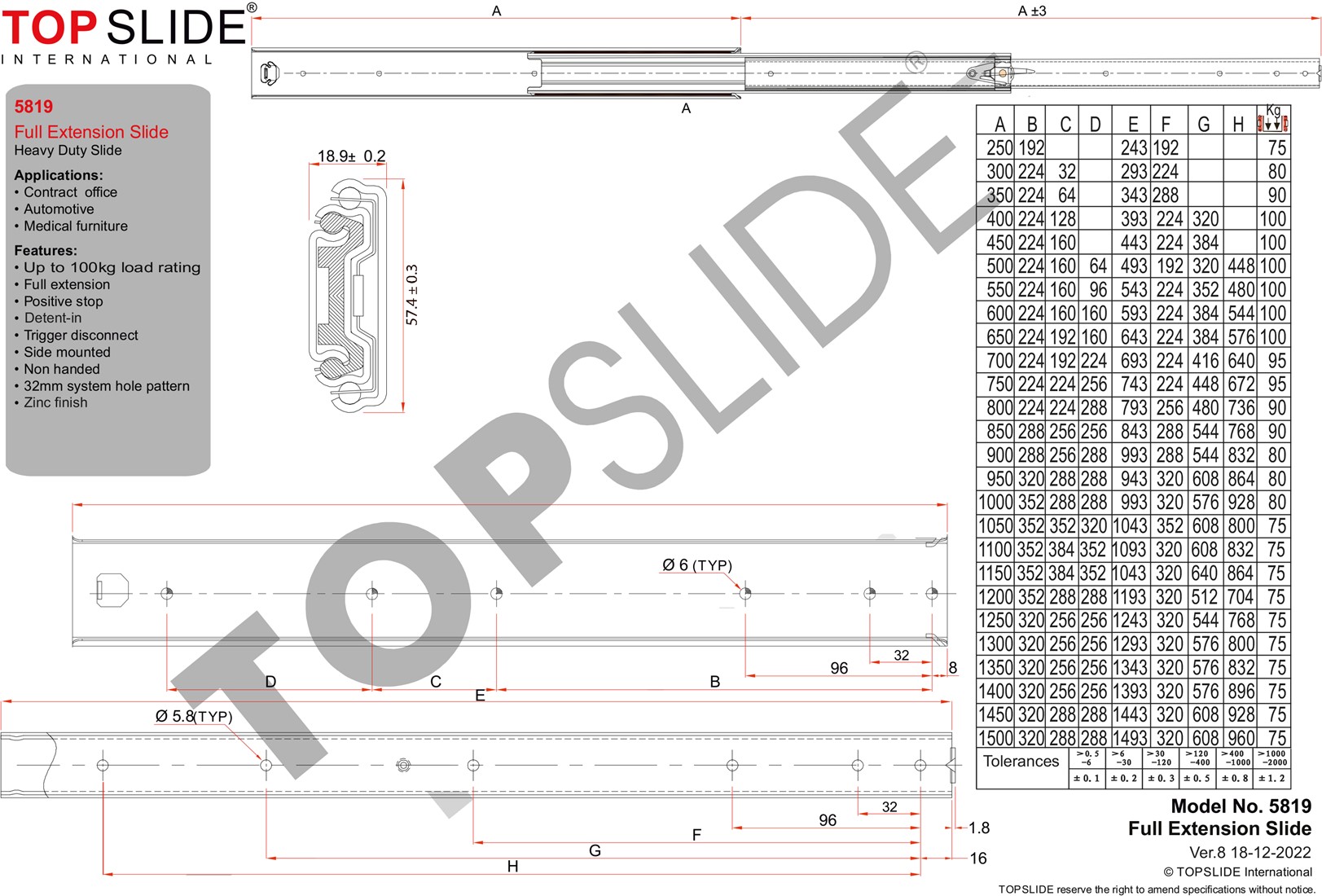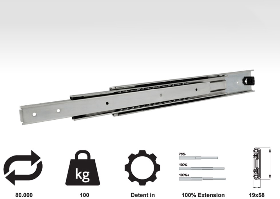 Deze ladegeleider is een volledig uittrekbare kogellagergeleider, gemaakt van gegalvaniseerd staal van het merk Topslide. Een set geleiders is belastbaar tot maximaal 100 kg, wat deze uitvoering geschikt maakt voor zware lades zoals gereedschapslades, werkbanken of industriële toepassingen. Dankzij de robuuste uitvoering wordt deze geleider ook veel toegepast in de automotive sector en medisch meubilair.