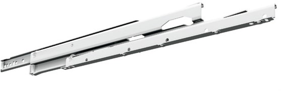 Vanaf een inbouwlengte van 300 mm beschikt deze geleider over een overextensie van 20 mm – de lade komt dus verder naar buiten dan de nominale inbouwlengte. Bekijk de tabel in de downloadbare PDF onderaan de pagina voor een compleet overzicht van de overextentie per maat. De ladegeleiders worden per set geleverd – je hoeft dus slechts één set toe te voegen aan je winkelwagen per lade.
