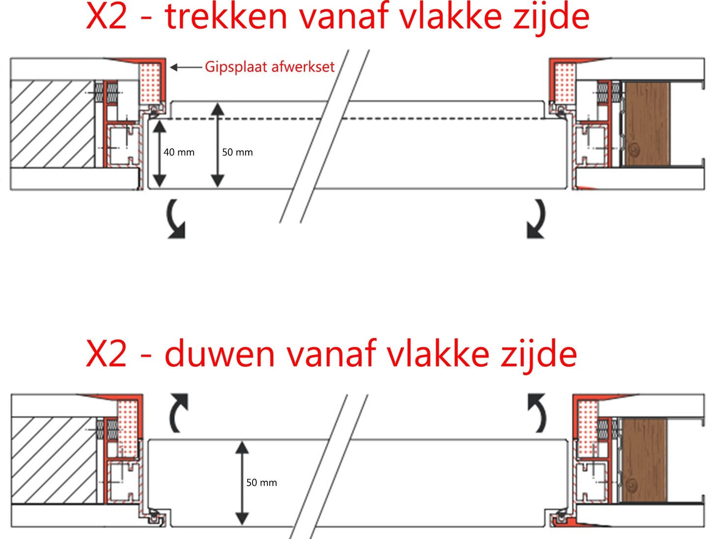 Open je de deur trekkend vanaf de minimalistische zijde, dan is een deurdikte van minimaal 40 mm benodigd.