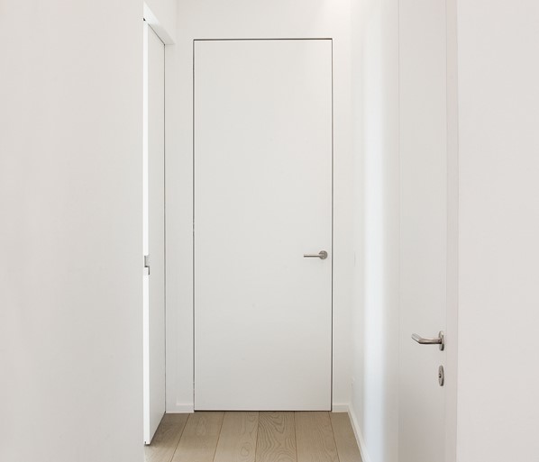 De minimale deurdikte is afhankelijk van de openingsrichting van de deur. Open je de deur duwend vanaf de minimalistische zijde? Dan is een deurdikte van minimaal 50 mm benodigd met een sponning van 10 x 13 mm links, rechts en boven. Bestel je de deur bij ons? Dan is deze sponning ook al ingefreesd.