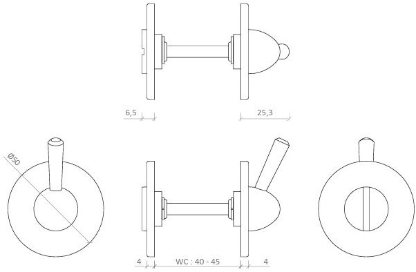 - Materiaal: RVS- Diameter: 50 mm- Stiftmaat: 6 mm- Finish: mat geborsteld